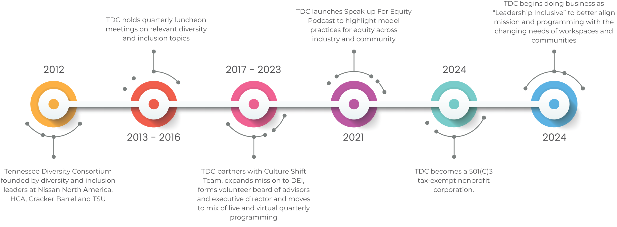 By April 2012, the group formalized its efforts and became the Tennessee Diversity Consortium (TDC), providing a structured space for collaboration, shared learning, and leadership development. For over a decade, the TDC served as a trusted network for professionals across the region.